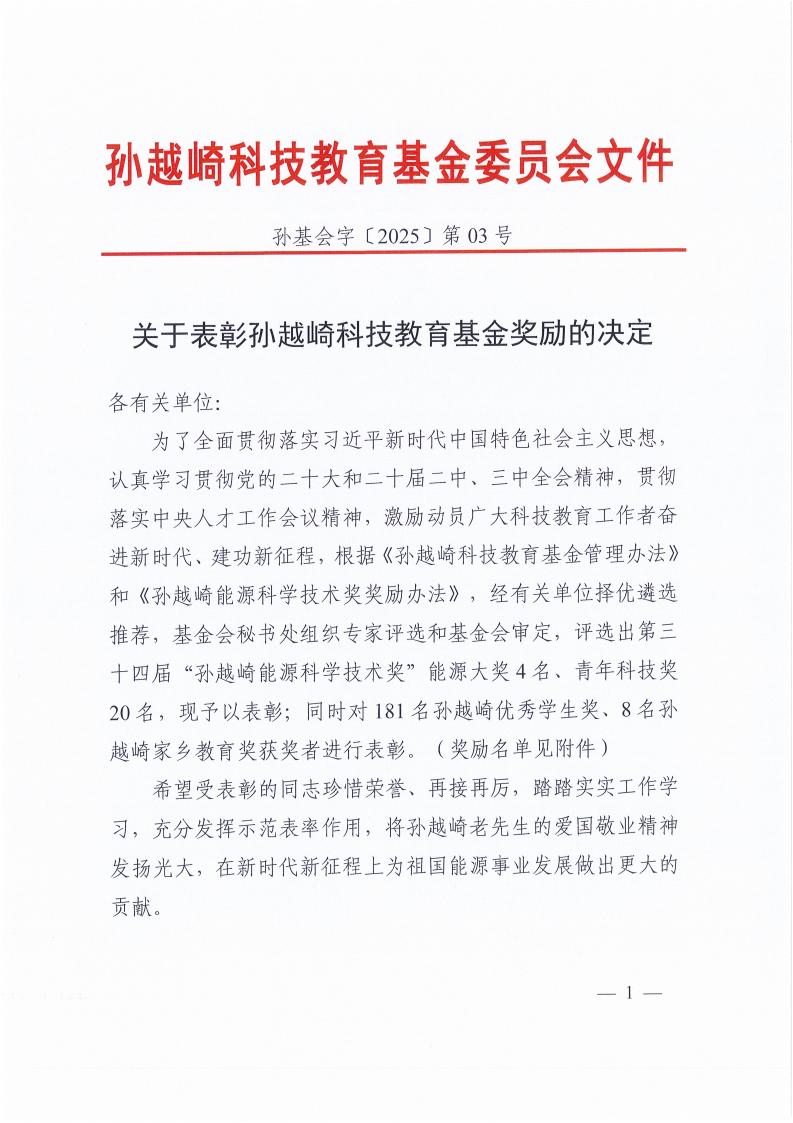 关于第三十四届孙越崎能源科学技术奖奖励的决定